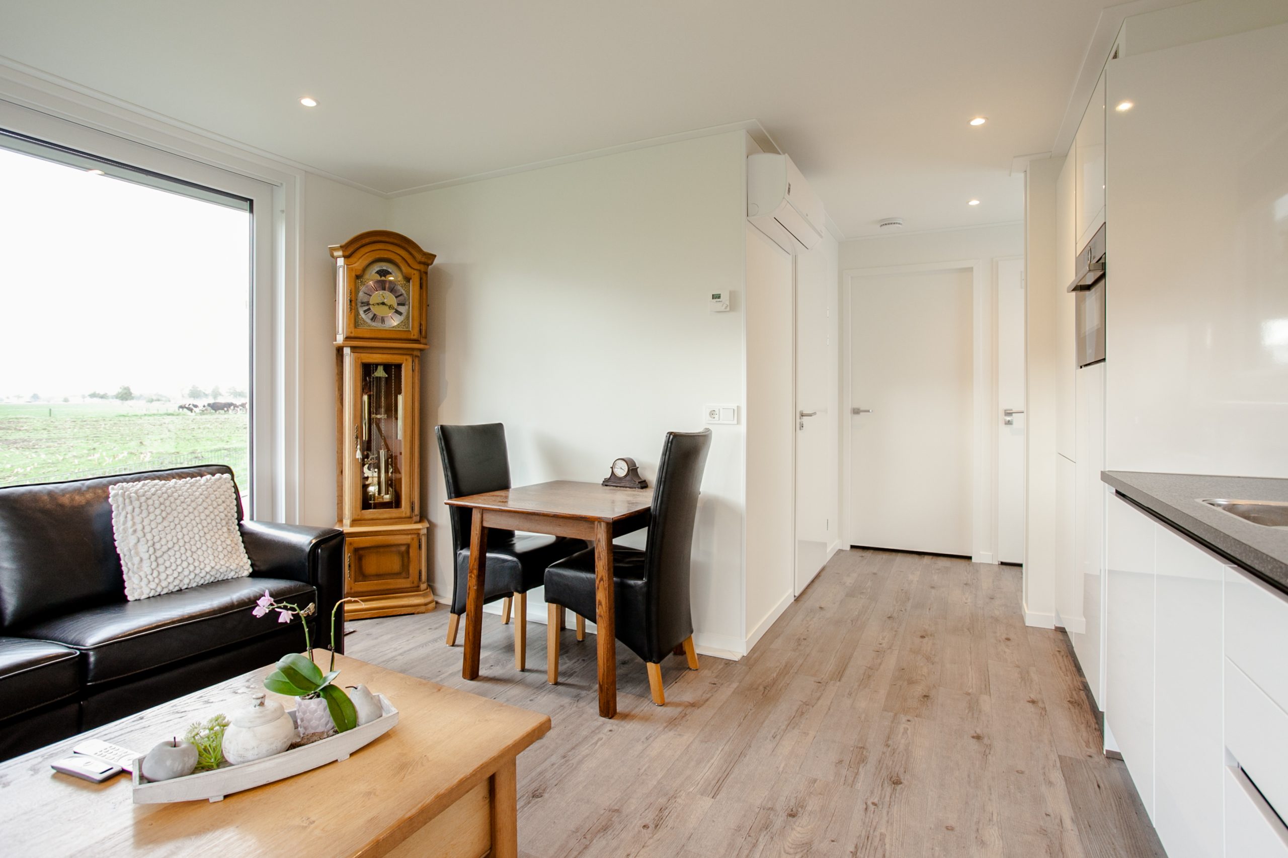 “Ik heb het hier heel goed naar mijn zin”, vertelt de heer Jansen. “Alles zit erop en eraan. Een lekkere keuken, slaapkamer met inloopbadkamer en een gezellige woonkamer met geweldig uitzicht over de landerijen. Dit uitzicht blijft gelukkig zo. De naastgelegen parkeerruimte wordt nog wel wat uitgebreid, maar woningen zullen hier niet gebouwd gaan worden. Ik geniet van de koeien in de wei en de vogeltjes die komen snoepen van het lekkers dat ik voor ze ophang. Het is net of ik vanuit mijn woonkamer naar een levend schilderij kijk.”