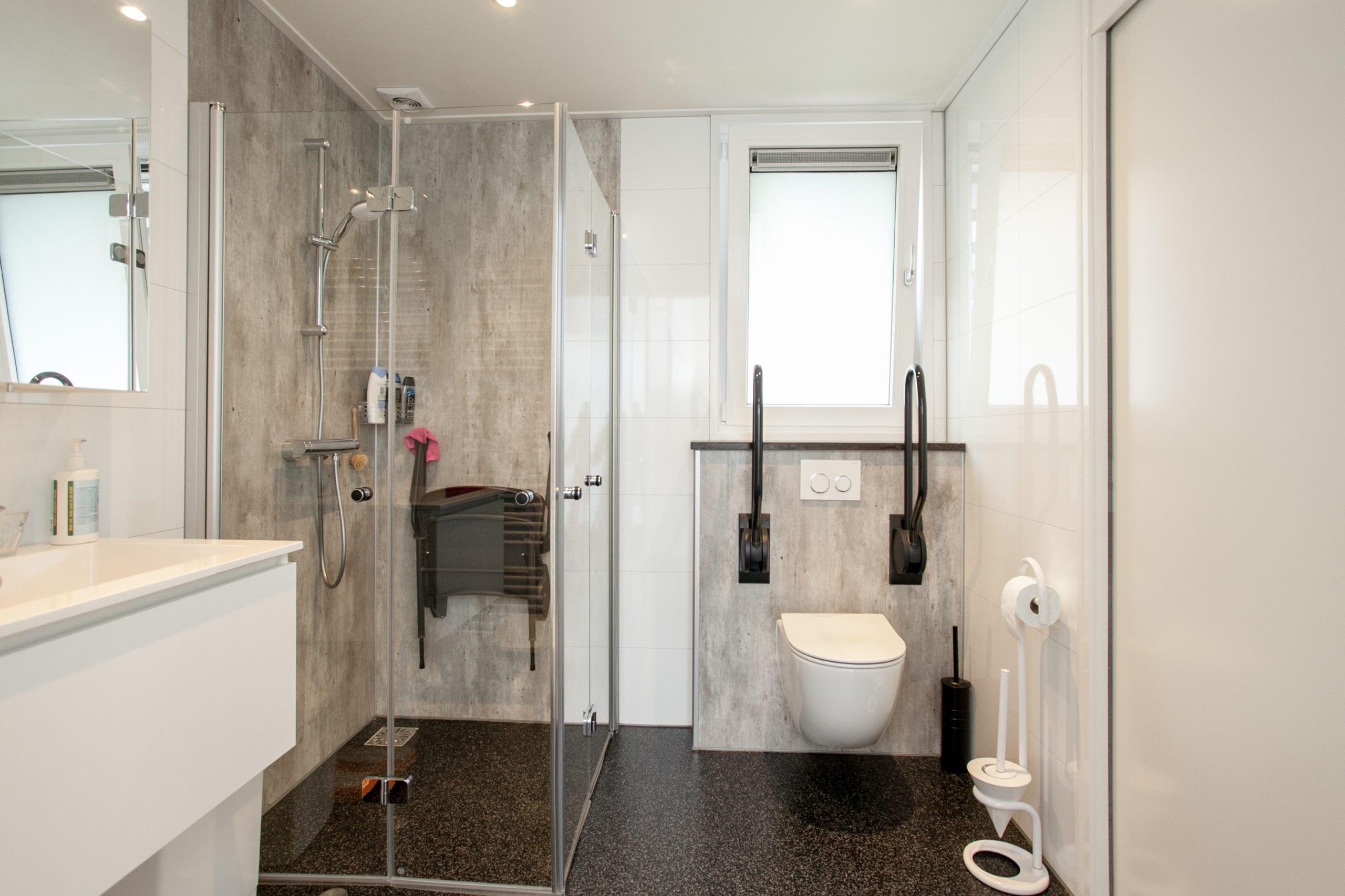 “Achter de woning heb ik een heerlijk overdekt terras. Omdat de naastgelegen grond een stuk lager ligt, houden wij het hier droog en zit ik in de zomer op een soort podium, waardoor ik alles goed kan zien. De winkels liggen op loopafstand en ik houd contact met de buurt. Doordat mijn dochter en kleinkinderen in ons oude huis wonen, heb ik veel aanloop. Elke dag komt er wel iemand even koffiedrinken of een praatje maken; supergezellig en ik ben dan niet zo alleen. Ik woon dus helemaal vrij maar mijn sociale leven is toch dichtbij.”