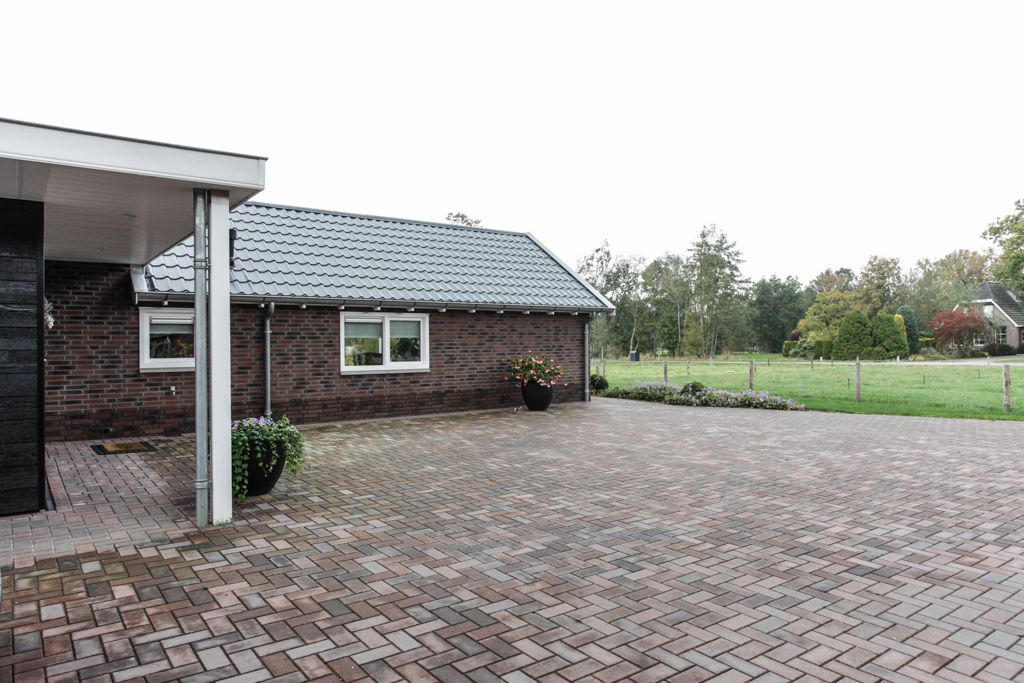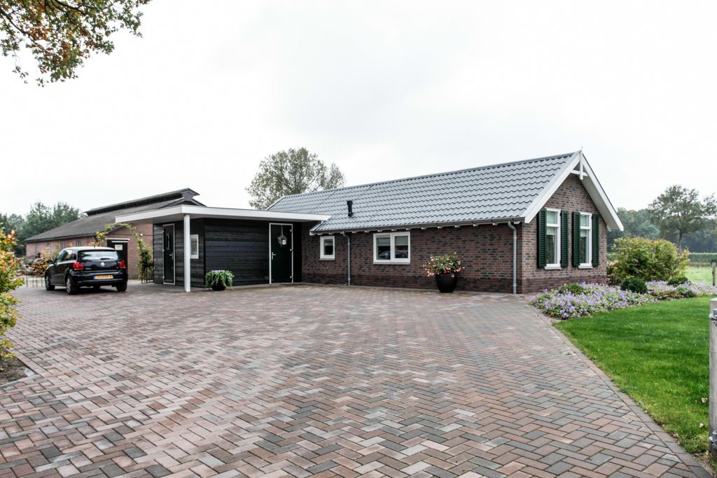 “Ze waren die ochtend om halfvijf vanuit Kootwijkerbroek vertrokkenmet het exceptioneel transport. Je verbaast je al dat het goed gaat, met al die nauwe straatjes, scherpe bochten en verkeersdrempels. Voor de chauffeur was het een hele uitdaging. Ze vertelden dat ze vooraf de hele route nagaan om te kijken of ze overal langs kunnen en de maximale doorrijhoogte voldoende is. Rond halfacht kwamen ze hier, maar dat laatste stukje, van de weg naar het erf, was te smal voor de vrachtauto en dat moesten ze overbruggen met een verreiker. Ze hadden ook rijplaten nodig, zo modderig was het.”